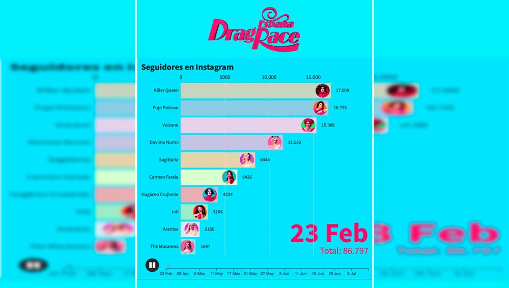 ¿Quieres saber cómo han evolucionado los seguidores de nuestras reinas en las redes sociales Twitter y Instagram desde su paso por 'Drag Race España'? ¡Aquí tienes su evolución!