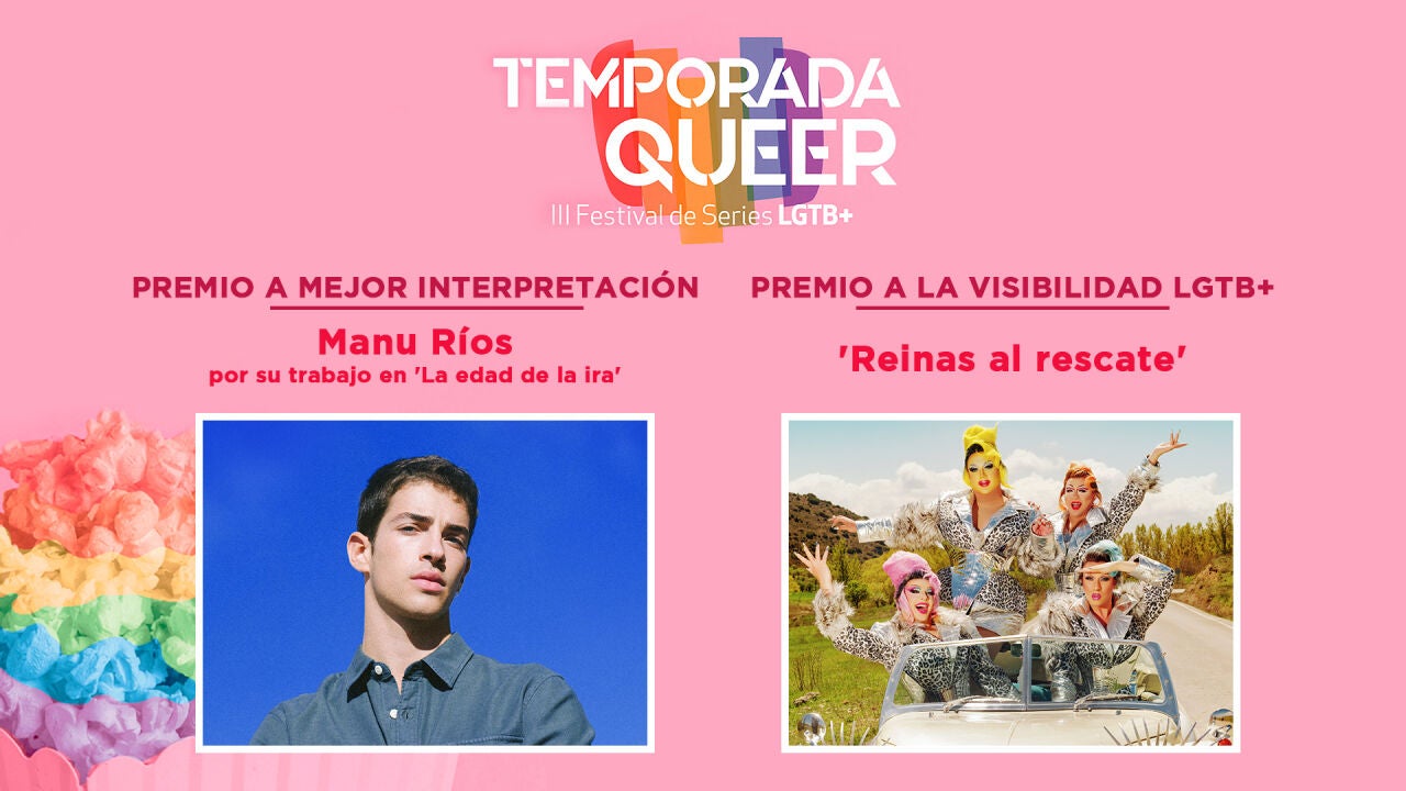 Dos de los formatos de ATRESplayer PREMIUM han sido premiados en la Temporada Queer del III Festival de Series LGTB+. Manu Ríos ha sido galardonado con el Premio a la Mejor Interpretación por su trabajo en 'La edad de la ira' y 'Reinas al rescate' ha recibido el Premio a la Visibilidad LGTB+.